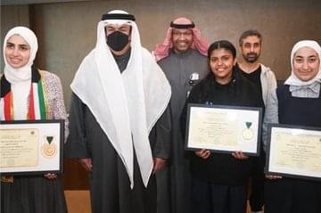 أكد وزير التربية الدكتور علي المضف اعتزاز الكويت بحصول الطالبات غلا العنزي وغادة العتيبي على ميداليتين ذهبيتين وجمانة اشكناني على ميدالية فضية في مسابقة مناهزات اللغة العربية التي أقيمت في دولة الامارات الشقيقة.