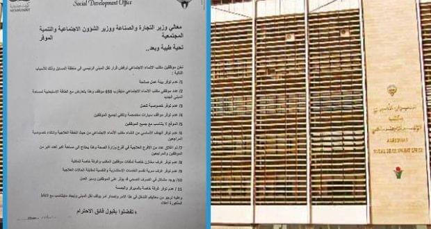 دعا موظفو مكتب الإنماء الاجتماعي، وزير التجارة والصناعة ووزير الشؤون الاجتماعية والتنمية المجتمعية فهد الشريعان، بإعادة النظر في نقل مقر العمل إلى المبنى الجديد بمنطقة المسايل كون الأخير غير مؤهل لأداء مهامهم ولا يكفي لاستيعاب الموظفين أو لتقديم الخدمات الاجتماعية.
