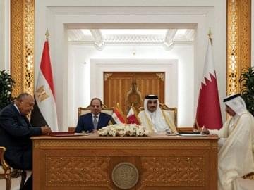 ووسط رغبة في تعميق العلاقات المصرية القطرية وطي صفحة الخلافات، أعلن مجلس الوزراء القطري ترحيبه بنتائج مباحثات أمير قطر والرئيس المصري خلال زيارة الأخير لدولة قطر، التي جاءت «في إطار العلاقات الأخوية والتاريخية بين البلدين»، لافتاً إلى أن التوقيع على مذكرات التفاهم فتحت أمام البلدين آفاقاً جديدة لتوسيع وتطوير التعاون في مختلف المجالات، وتكثيف الجهود لخدمة القضايا العربية وتعزيز العمل العربي المشترك.