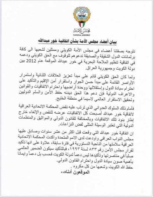 32 نائباً يصدرون بياناً حول اتفاقية خور عبدالله نشرت بواسطة: فريق التحرير في برلمان 2023/10/03 التعليقات على 32 نائباً يصدرون بياناً حول اتفاقية خور عبدالله مغلقة شارك هذا الموضوع:فيس بوكX 2023-10-03فريق التحرير tweet