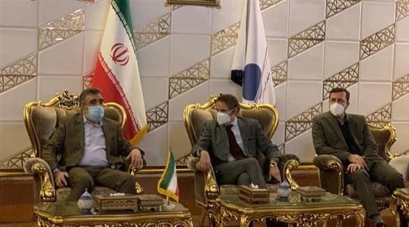 ونشر السفير كاظم غريب أبادي صورة عبر حسابه على تويتر قرابة الساعة التاسعة مساء (1830 ت غ)، يظهر فيها غروسي متوسطاً إياه ونائب رئيس المنظمة الإيرانية للطاقة الذرية بهروز كمالوندي، مع تعليق جاء فيه “المدير العام غروسي وصل الآن إلى طهران”.