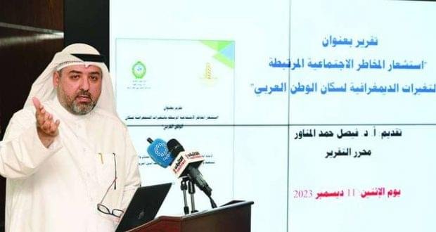 وأضاف «للنظر في مشاكل المخاطر الاجتماعية، تم إعداد التقرير الموسع حول قضايا متعددة، سواء على المستوى الديموغرافي ونمو السكان الى جانب رصد مجموعة مخاطر اجتماعية تعيشها الدول العربية».