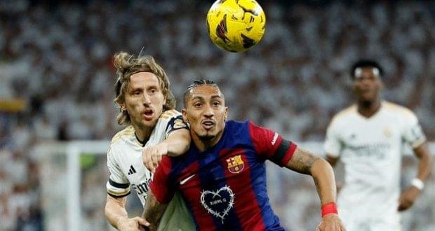 حسم التعادل الإيجابي 1-1 مجريات الشوط الأول من مواجهة ريال مدريد وبرشلونة، على إستاد سانتياغو برنابيو، ضمن منافسات الجولة 32 من الدوري الإسباني.