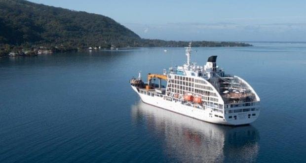 وتظهر صور سفينة الرحلات البحرية Aranui 5، التي تستضيف رياضيي ركوب الأمواج في الألعاب الأولمبية، وهي راسية في خليج فايراو بالقرب من ساحل جزيرة تاهيتي الفرنسية في بولينيزيا.