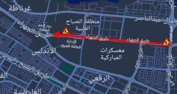 اعلنت الإدارة العامة للمرور عن إغلاق جسر طريق الجهراء العلوي للقادم من مدينة الكويت باتجاه الجهراء اعتباراً من اليوم الاربعاء حتى يوم الجمعة الثالث من يناير، وذلك لصيانة فواصل التمدد بالطريق ودعت قائدي المركبات إلى الانتباه واتخاذ طرق بديلة خلال فترة الإغلاق.