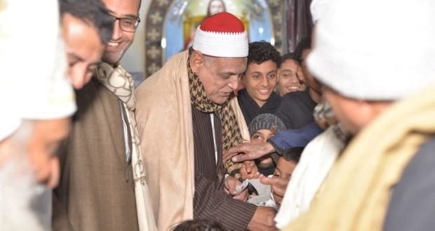 وسط فرحة وسعادة عارمة، شارك شيخ أزهري في توزيع العيدية على الأطفال داخل كنيسة العذراء مريم، في قرية القلمينا بمركز الوقف شمالي محافظة قنا المصرية.