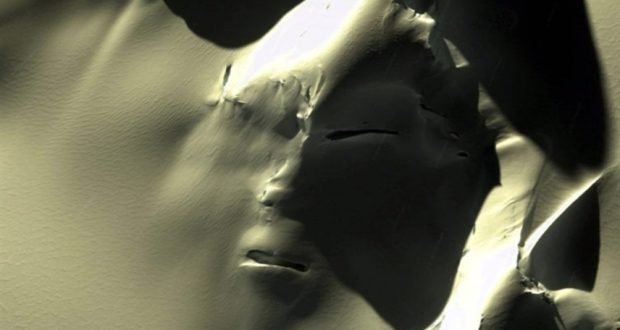 أظهرت صورة ملتقطة عبر الأقمار الصناعية، وجهاً غامضاً عملاقاً يبرز من الثلوج بالقرب من القطب الجنوبي، مما أثار تكهنات حول احتمال ارتباطه بكائن فضائي، أو بظاهرة مشابهة على كوكب المريخ.