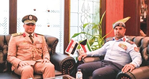 بحث نائب رئيس الأركان العامة للجيش اللواء الركن طيار الشيخ صباح جابر الأحمد مع الملحق العسكري لجمهورية مصر العربية الشقيقة لدى البلاد العقيد أركان حرب مصطفى حسن موضوعات عسكرية مشتركة.