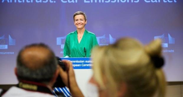وقالت المفوضة الأوروبية لسياسة التنافسية مارجيريت فيستاجر في مؤتمر صحفي ببروكسل ” إن الشركات الخمس هي (فولكس فاجن) و(دايملر) و(بي.إم.دبليو) و(اودي) و(بورش) وتمتلك جميعها تكنولوجيا من شأنها تقليل الانبعاثات الضارة بالبيئة بأقل من المعايير القانونية التي وضعها الاتحاد الأوروبي وعمدت الى تقليص المنافسة في استخدام إمكانات تلك التكنولوجيا بأقل من المتطلبات التي يفرضها القانون”.