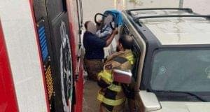 أنقذت فرق الإطفاء اليوم، عائلة علقت مركبتها في تجمع مياه ...