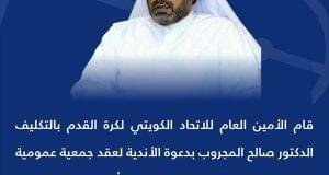 قام الأمين العام للاتحاد الكويتي لكرة القدم بالتكليف د.صالح المجروب ...